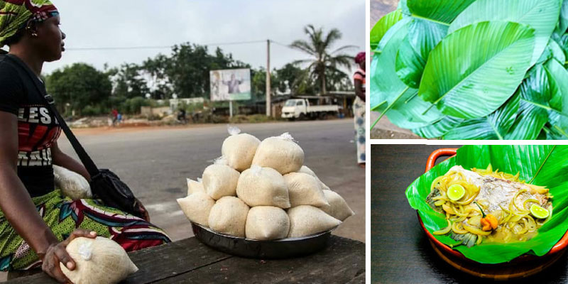 Dans les années 70-80, l'attiéké était emballé dans des feuilles. Le nom scientifique de la feuille d'attiéké est Thaumatococcus danielli. Cette plante traditionnelle servait d'emballage bio à nos mamans pour vendre l'attiéké.